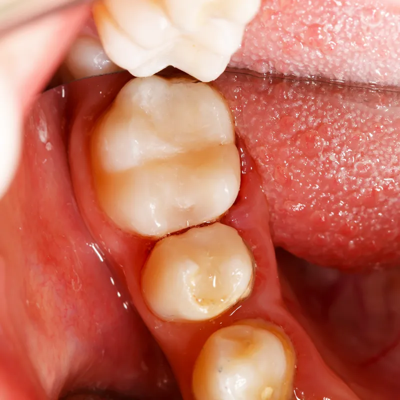 Fissure sealants: Thin, protective coatings applied to the grooves of molars and premolars to prevent food particles and bacteria from causing cavities. Ideal for children and teens with newly erupted permanent teeth.